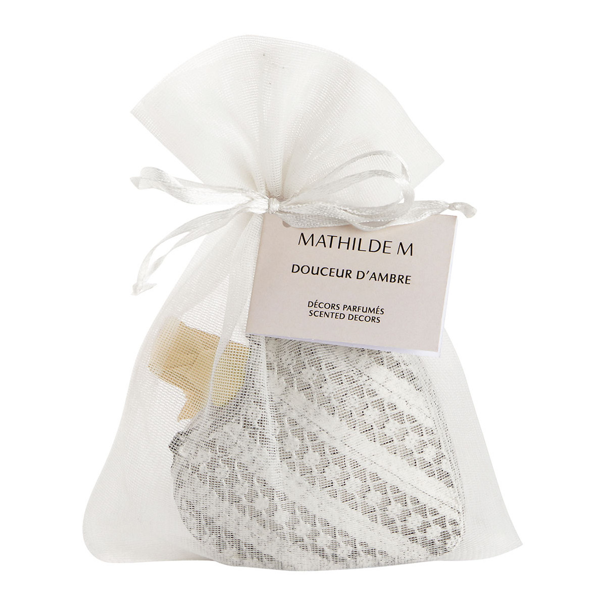 Apportez une touche de romantisme et de délicatesse à votre intérieur avec cet irrésistible bijou décoratif en métal en forme de cœur. Inspiré du charme d’antan, il révèle de sublimes détails ciselés et renferme un joli cœur en plâtre parfumé. Son délicat ruban vient parfaire cette création et lui apporte une touche féminine et élégante, fidèle à l’esprit raffiné de Mathilde M. À accrocher à une porte, suspendre à une poignée ou simplement à disposer sur un meuble.
