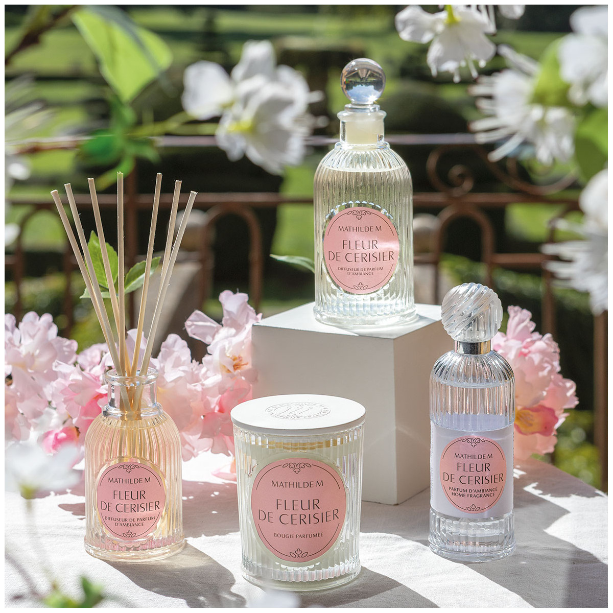 Découvrez Fleur de Cerisier, une senteur délicate et lumineuse. La fleur de cerisier fraîchement éclose annonce l’arrivée du printemps et des beaux jours. En tête, la fraîcheur florale de l’aubépine s’allie au croquant de la pomme. Au cœur de la création parfumée, la fleur de cerisier se déploie, tendre et féminine. En fond, la vanille veloutée et les notes boisées du cèdre enveloppent le sillage d’une chaleur subtile, à la fois douce et raffinée.