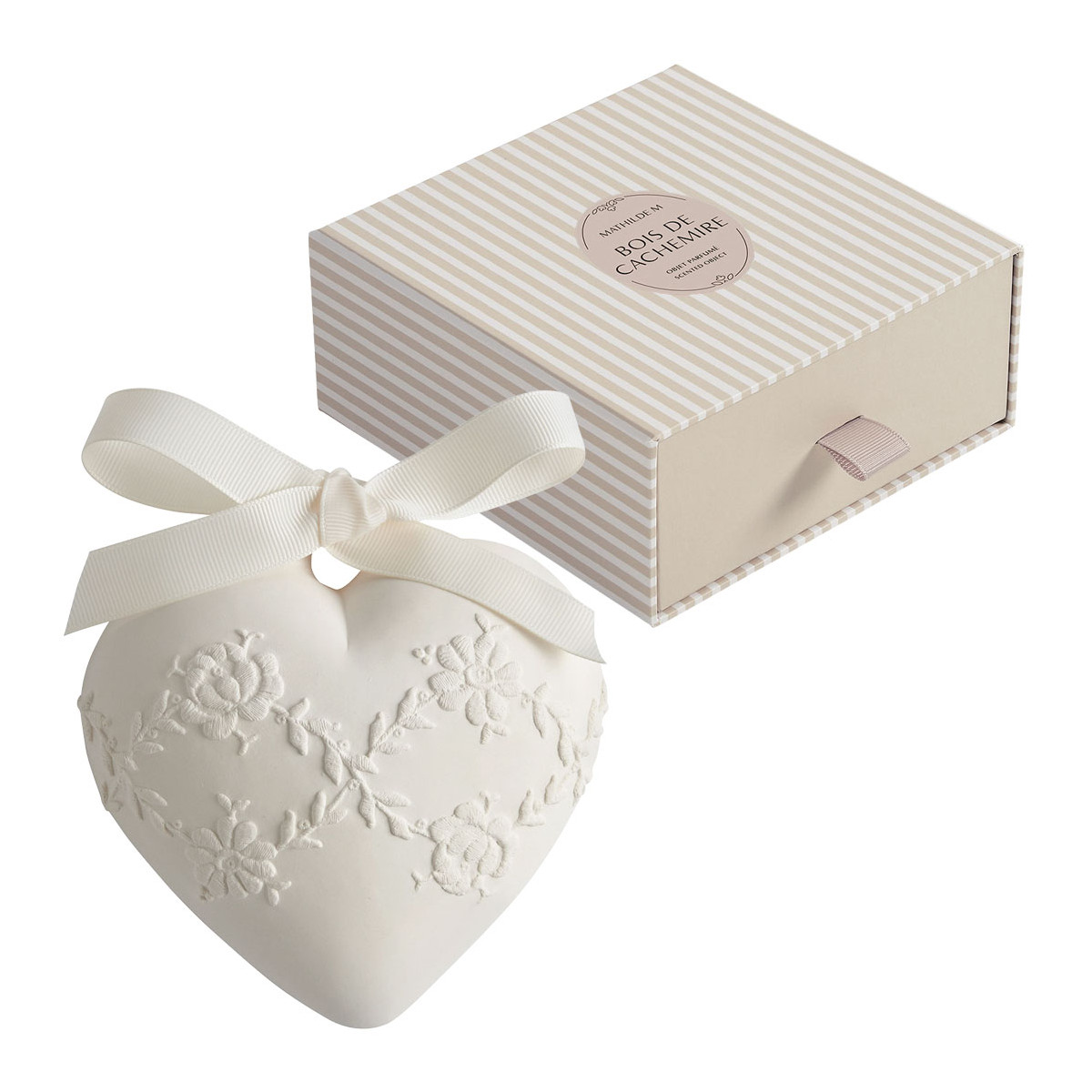 Entièrement réalisé à la main, ce cœur en plâtre parfume délicatement et pour longtemps tous les petits espaces de votre maison comme les armoires, tiroirs ou bagages. Posé dans une coupelle sur une table, elle se transforme en véritable objet précieux décoratif.
