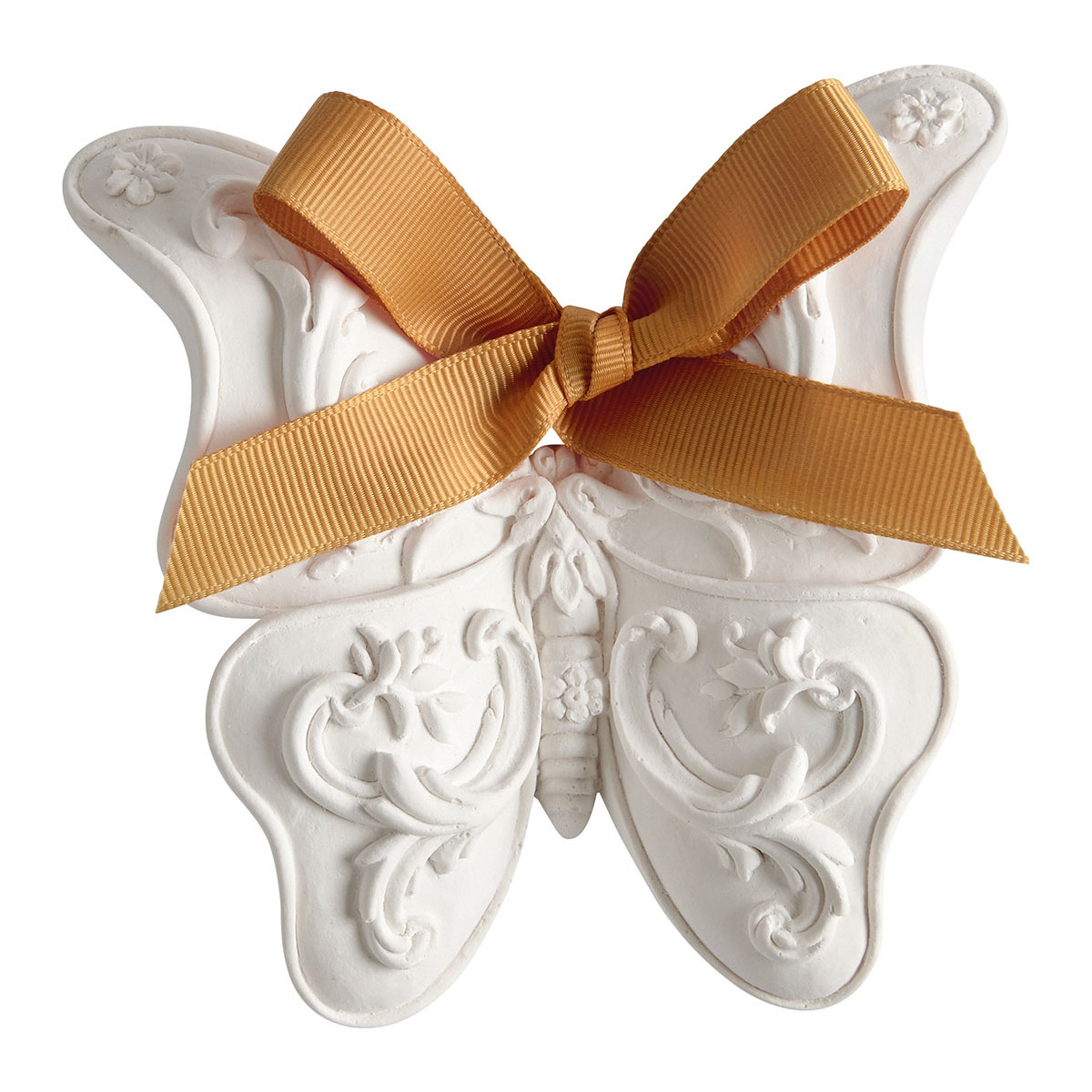 Entièrement réalisé à la main, ce papillon en plâtre parfume délicatement et pour longtemps tous les petits espaces de votre maison comme les armoires, tiroirs ou bagages. Posé dans une coupelle sur une table, elle se transforme en véritable objet précieux décoratif.
