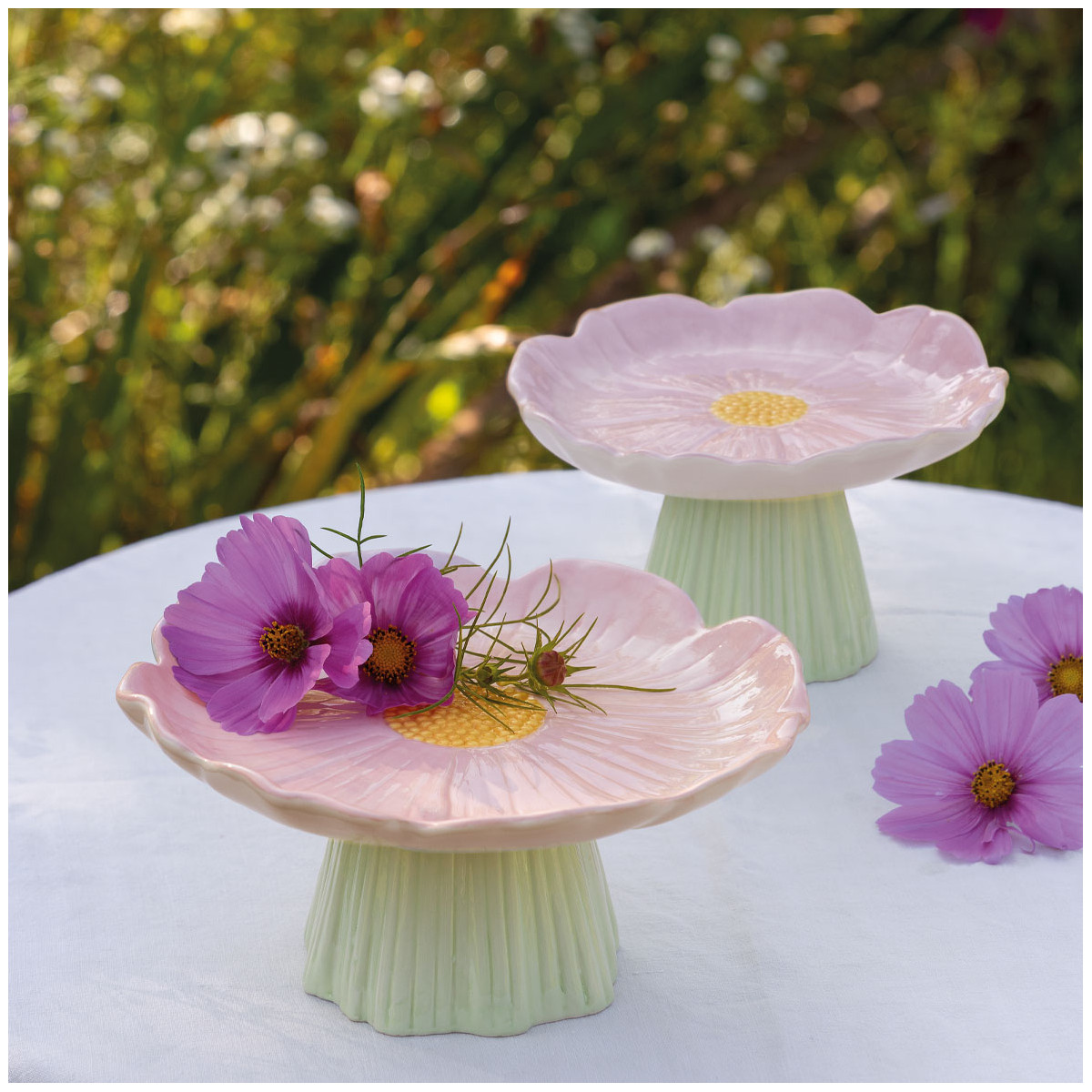 Véritable objet de décoration, le plateau sur pied Tulipe apporte une touche poétique et délicatement colorée à la décoration de table. Il est parfait pour présenter un gâteau ou disposer de délicieuses pâtisseries.