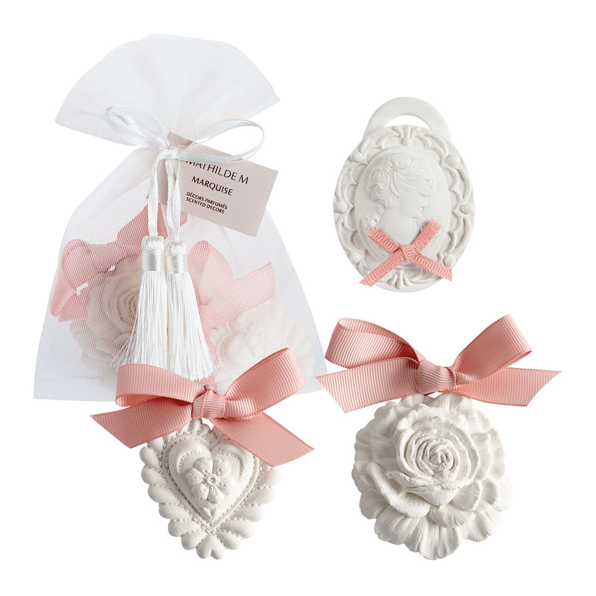 3 décors en plâtre (Médaillon, Cœur Boutis et Rosa), parfum Marquise