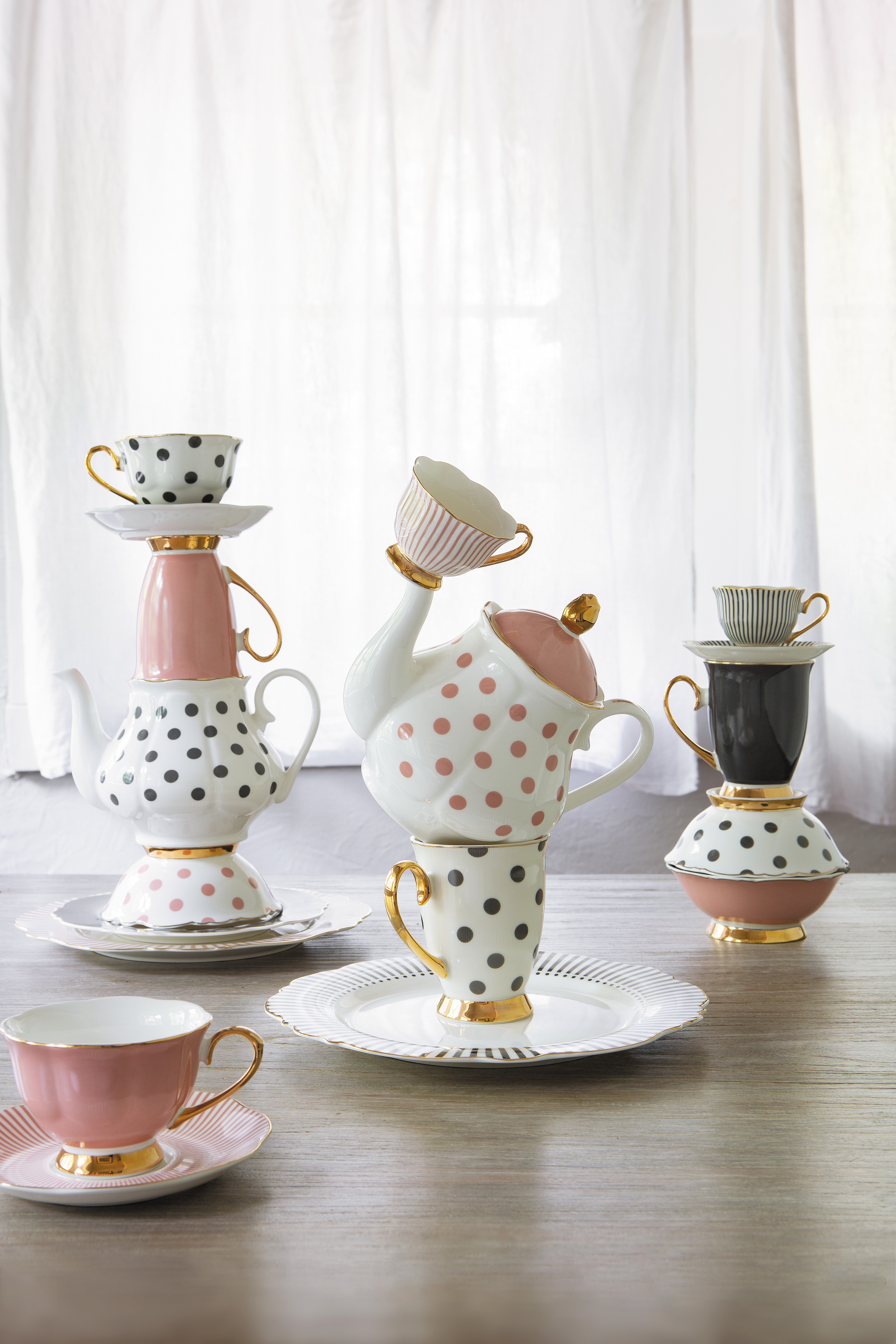 Per quanto riguarda i motivi, questa linea di stoviglie vi sedurrà con le sue linee chic o i suoi eleganti pois. Potete trovare la collezione Madame de Récamier in grigio scuro, rosa o dorato, per dare un tocco festivo al vostro interno. Queste stoviglie in porcellana sono ideali per aggiungere un tocco di delicatezza alla vostra tavola, in qualsiasi occasione. Potete mixare le tonalità e le stampe, per uno stile chic e raffinato.