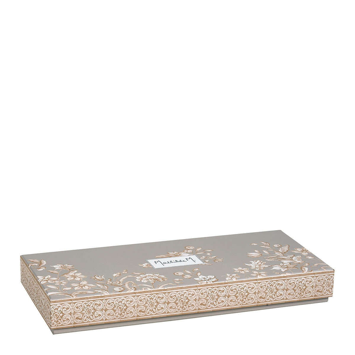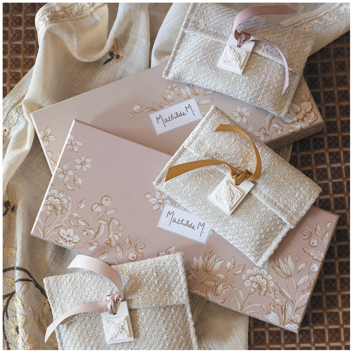 Lasciatevi sedurre dall'eleganza di questo cofanetto che contiene due pochette decorate con un elegante medaglione a forma di azulejo e profumate con Fleur de Coton, una fragranza dolce e avvolgente nata dall'unione di fiori bianchi, cotone e legni preziosi.
