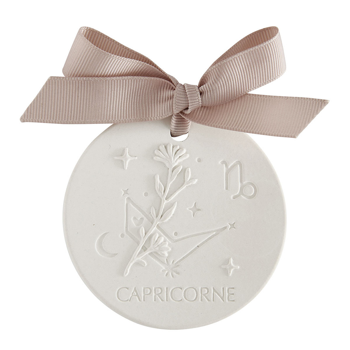 Mathilde M reinterpreta con delicatezza gli iconici segni astrologici. Ad ogni segno la sua costellazione incisa e il suo profumo Mathilde M associato. Qual è il vostro?n n nSe siete Capricorno: la vostra fragranza è Rose Élixir. Scoprite un profumo voluttuoso e ammaliante, un connubio tra la rosa, regina dei fiori, e le note polverose della violetta, su un letto di muschi bianchi.n n nBuono a sapersin nEmblematiche del marchio, le decorazioni in gesso Mathilde M sono delicatamente profumate e realizzate a mano nei nostri laboratori secondo metodi artigianali dalla nostra scultrice ornamentista.n n nI nostri consigli d'uson nQuando la fragranza si attenua, ravvivatela con il concentrato di profumo d'ambiente Mathilde M di vostra scelta. Una vaporizzazione applicata a circa 10 cm dalla decorazione è sufficiente per profumarla nuovamente per diverse settimane.n n nPrecauzioni d'uson nNon posizionare su superfici delicate o tessuti pregiati.n n nInformazioni aggiuntiven nComposizione decorazione profumata: gesson nDimensioni decorazione profumata: ø 7,7 x 0,5 cm