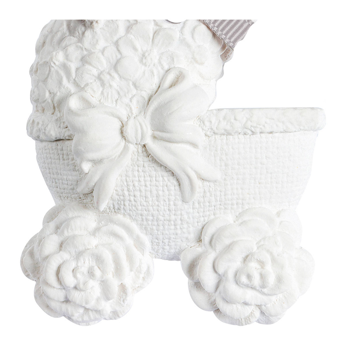 Interamente realizzato a mano, questo decoro in gesso rappresenta una graziosa culla con delicati motivi floreali. Profumerà delicatamente e a lungo tutti i piccoli spazi della vostra casa come armadi, cassetti o bagagli. Un'ottima idea regalo per la cameretta del bebè!
