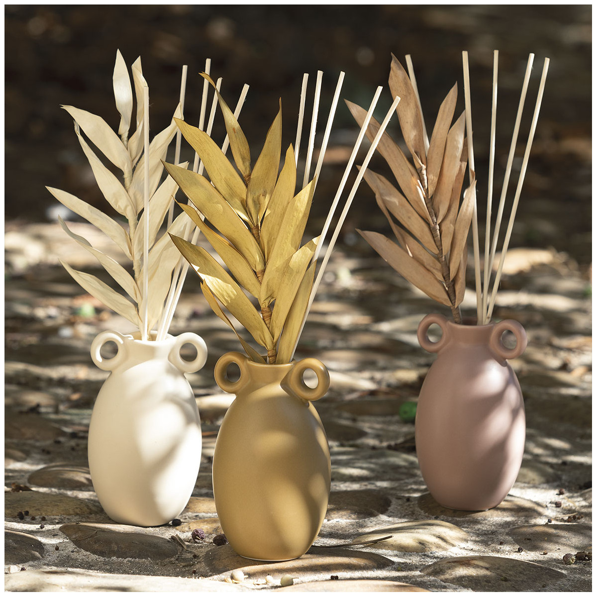 Lasciatevi sedurre dall'eleganza e dalla delicatezza del diffusore di profumo per ambiente Soleil de Provence. Con le sue forme di anfora antica, questo vero oggetto di decorazione ispirato alla tendenza dell'arredamento mediterraneo profuma per diverse settimane una stanza di medie dimensioni. Delicatamente disposti nel flacone, i bastoncini in rattan sbiancato si impregnano di profumo per capillarità per diffonderlo gradualmente nell'aria circostante. I fiori vegetali decorano il tutto e conferiscono al diffusore l'aspetto di un vero vaso.