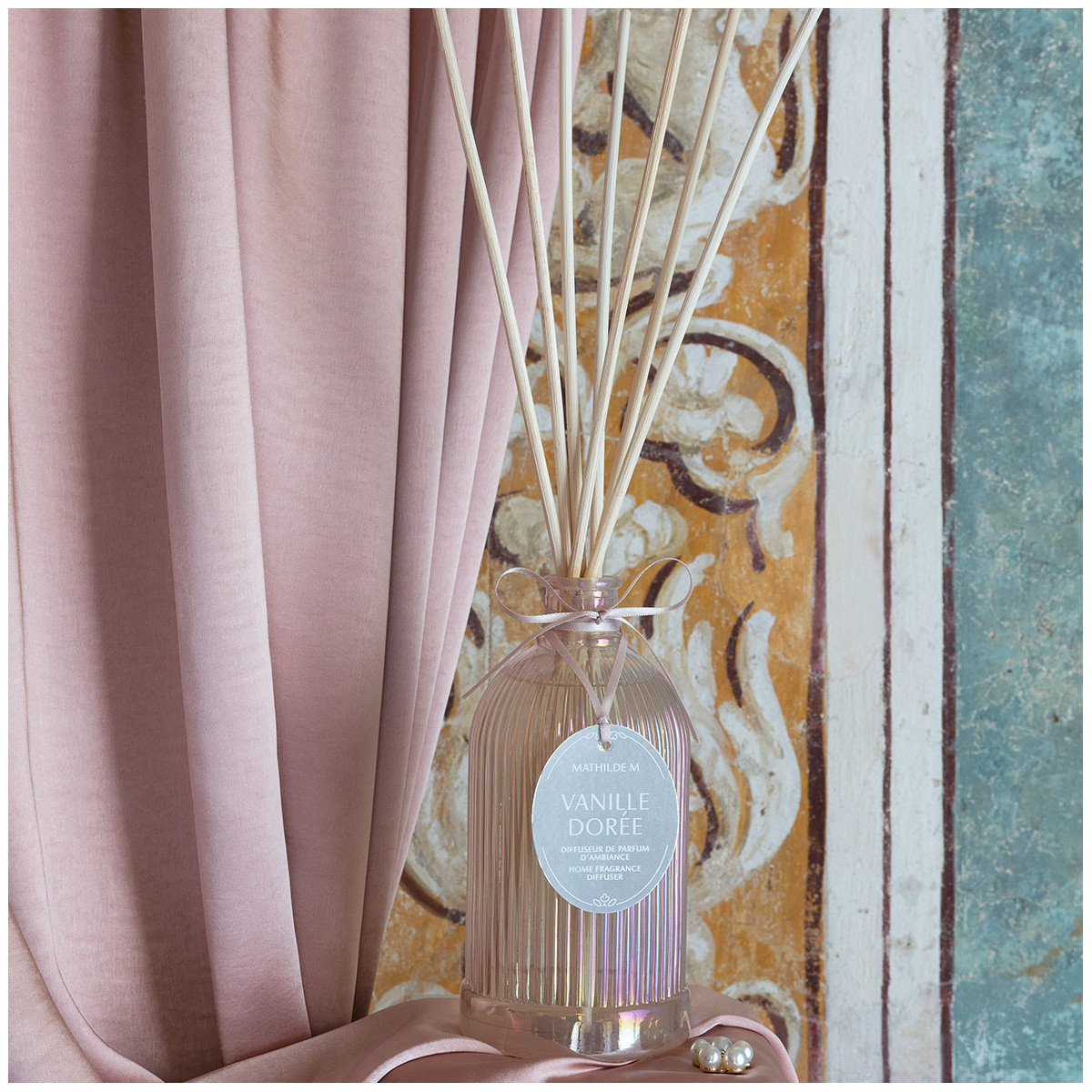 Vero oggetto di decorazione, questo diffusore di profumo per ambiente profuma continuamente il vostro interno. Delicatamente disposte nel loro scrigno di vetro iridescente costolato, le bacchette in rattan naturale si impregnano di profumo per capillarità. Questo diffusore profuma per diverse settimane una stanza di medie dimensioni.