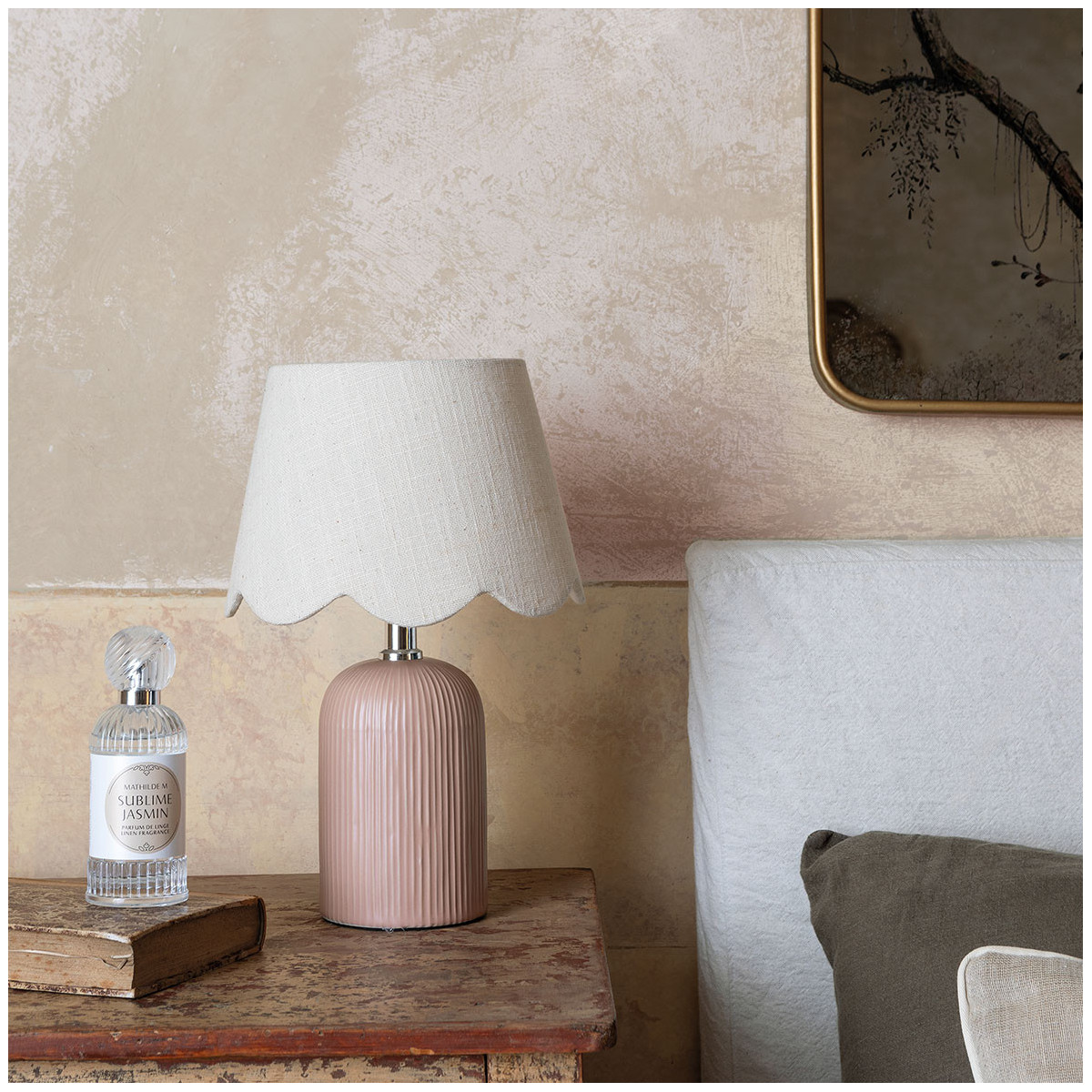Composizione: ceramica rosa e lino