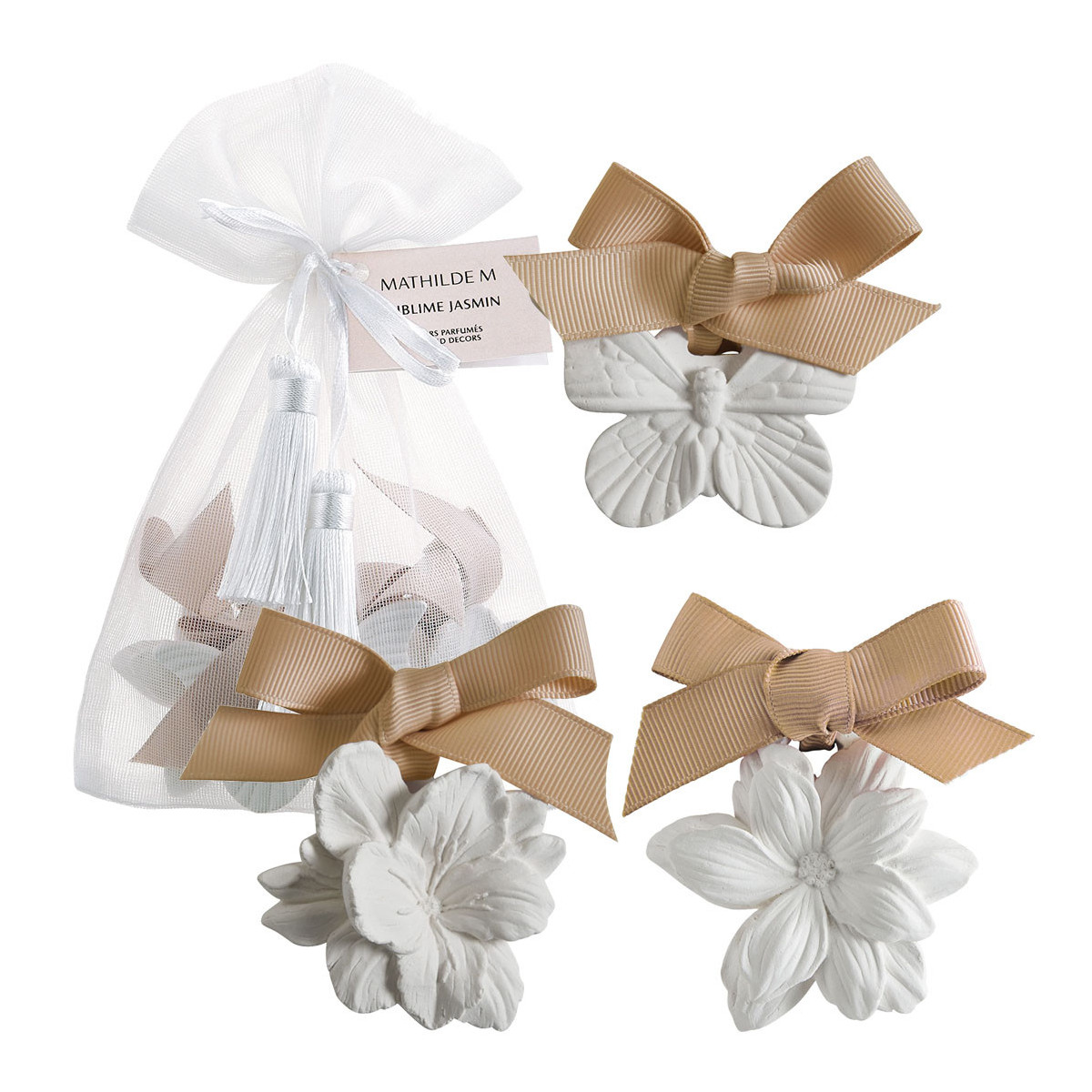 3 decori in gesso (Gelsomino, Farfalla e Fresia), profumo Sublime Jasmin