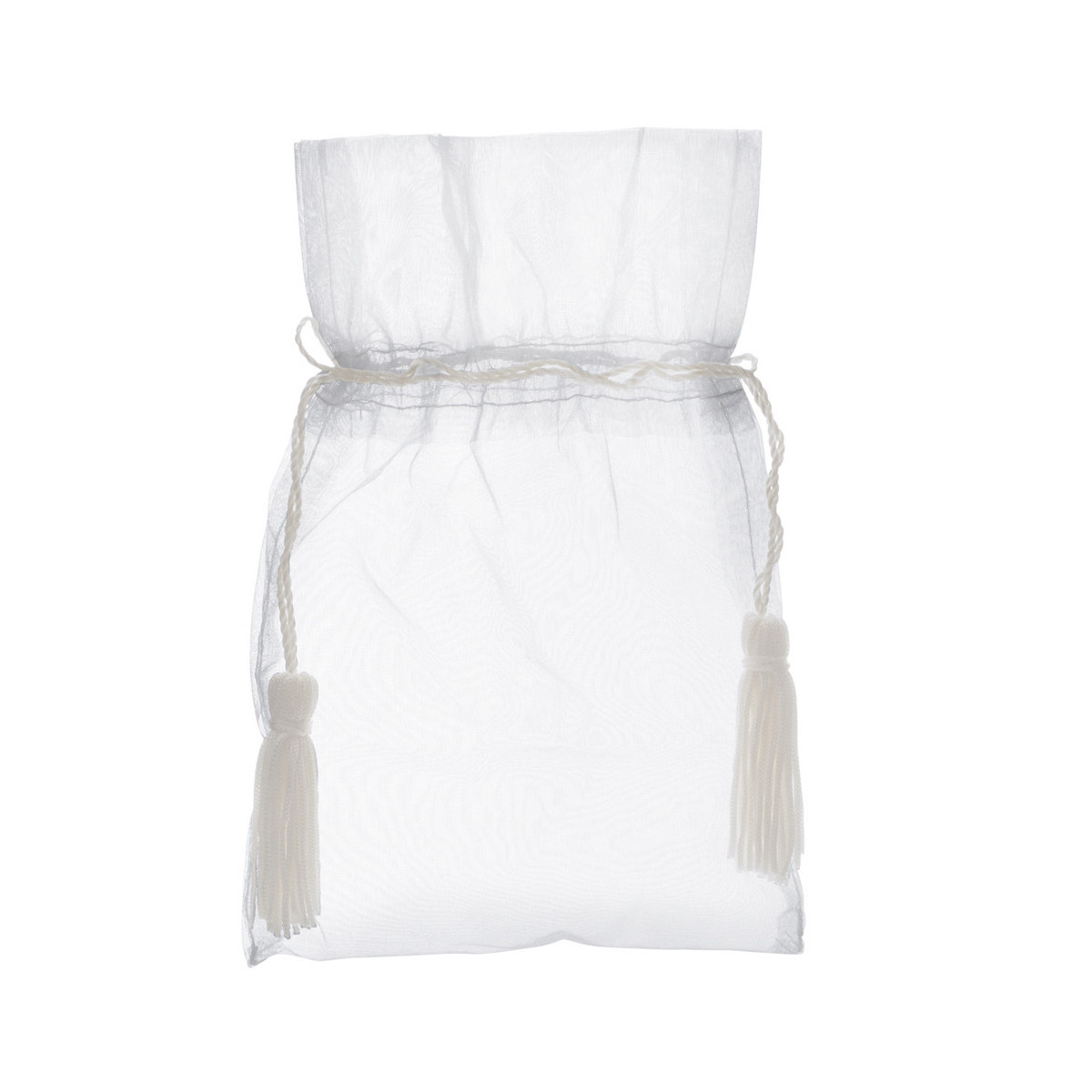 Inserisci le tue decorazioni profumate in questo grazioso sacchetto di organza, che potrai chiudere facilmente grazie al suo cordoncino con pompon.