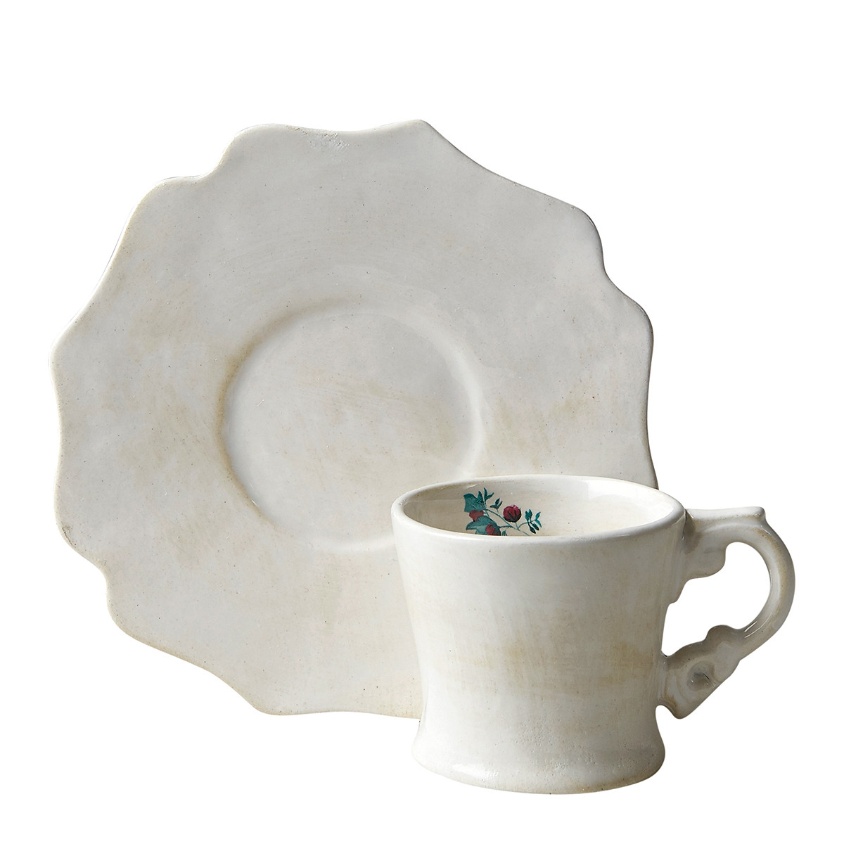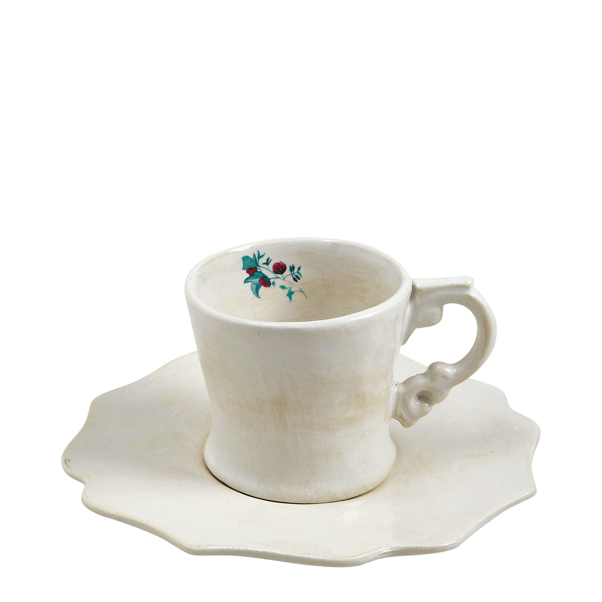 Aggiungi un tocco raffinato alla tua tavola con le tazze da caffè della collezione Capsule Rêve de Chine, realizzata in collaborazione con Mathilde Carron. Laureata all'Accademia di Belle Arti di Parigi e appassionata del XVIII secolo, la famosa ceramista francese ha creato una collezione raffinata che mescola forme classiche e decorazioni primaverili ispirate a un Oriente sognato.
