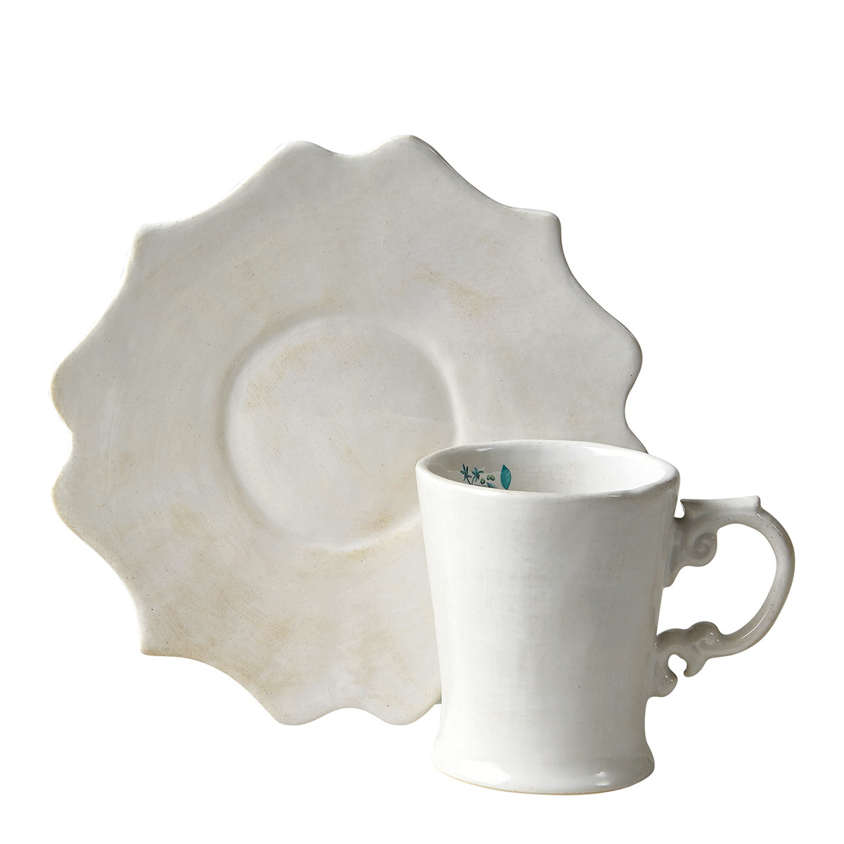 Aggiungi un tocco raffinato alla tua tavola con le tazze da tè della collezione Capsule Rêve de Chine, realizzata in collaborazione con Mathilde Carron. Laureata all'Accademia di Belle Arti di Parigi e appassionata del XVIII secolo, la famosa ceramista francese ha creato una collezione raffinata che mescola forme classiche e decorazioni primaverili ispirate a un Oriente sognato.
