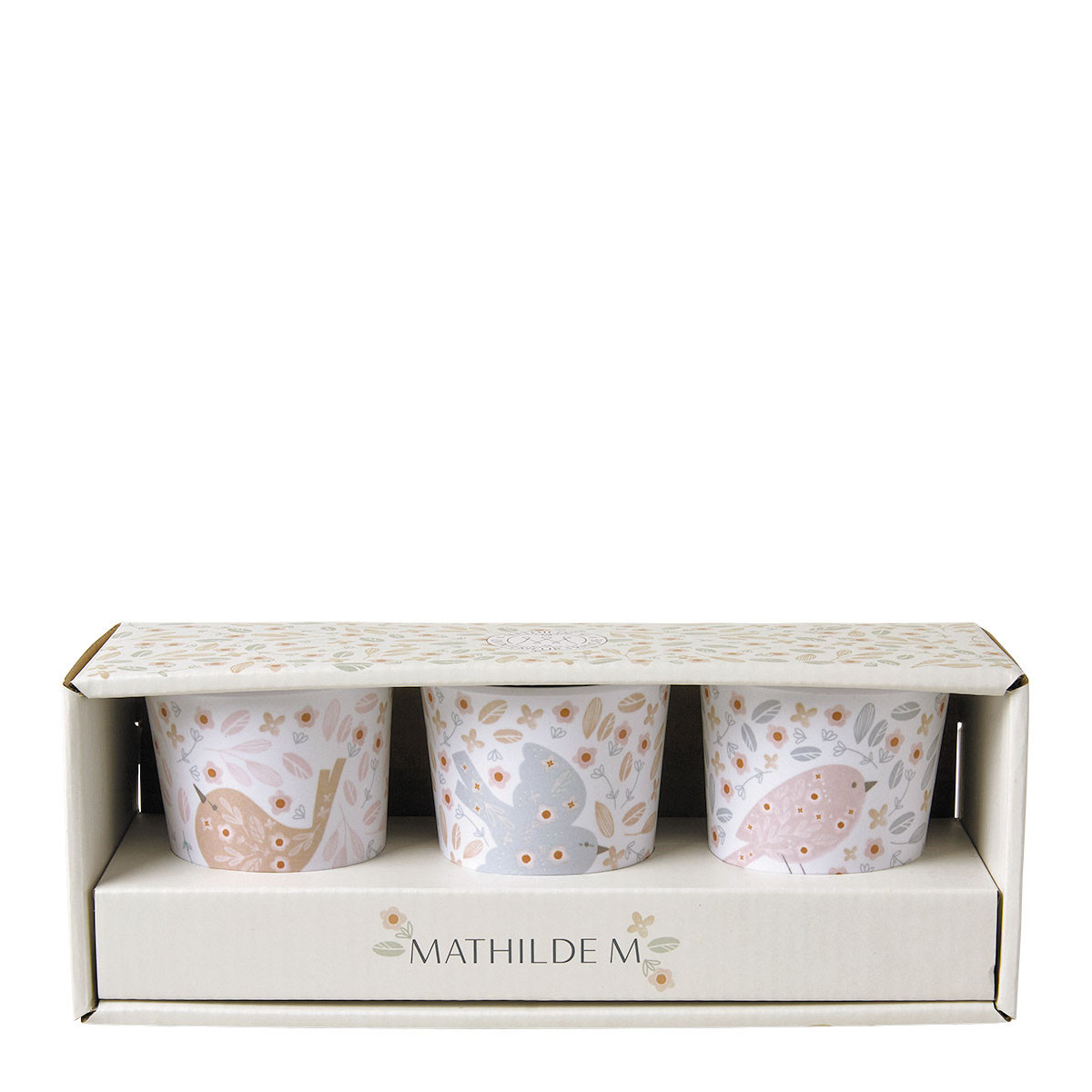 Scoprite subito questo meraviglioso set di 3 bicchieri Amour d'Oiseau, ideale per i primi pasti del bambino. Decorati con delicati motivi disegnati a mano nel nostro Studio di Creazione, questi bicchieri sono anche perfetti come idea regalo per i più piccoli.