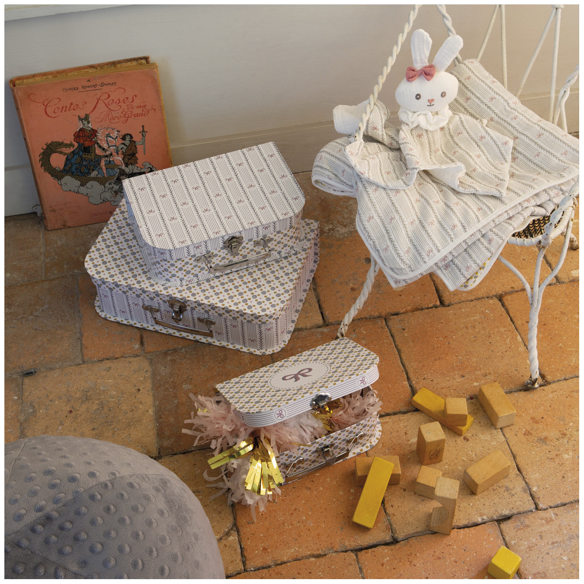 Questo set di 3 valigette ti permetterà di riporre facilmente e con eleganza le cose del bambino.