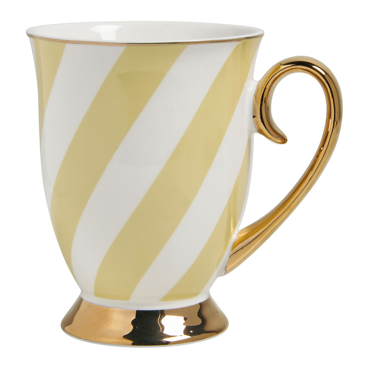 Regalati un momento di dolcezza con questa deliziosa tazza Madame de Récamier. Il suo design elegante combina graziose righe in toni giallo pastello e bianco con raffinate finiture dorate, per impreziosire la tua pausa golosa.