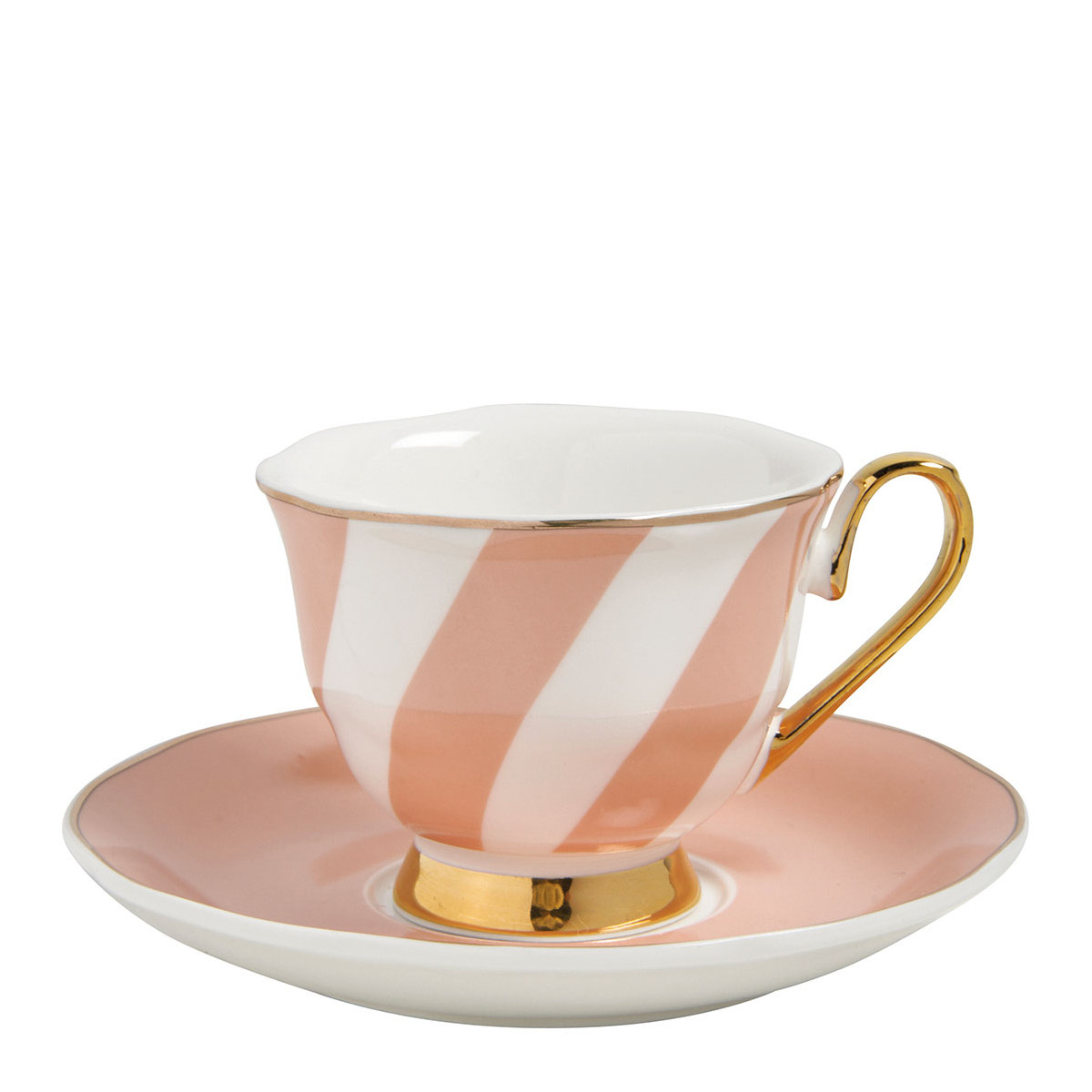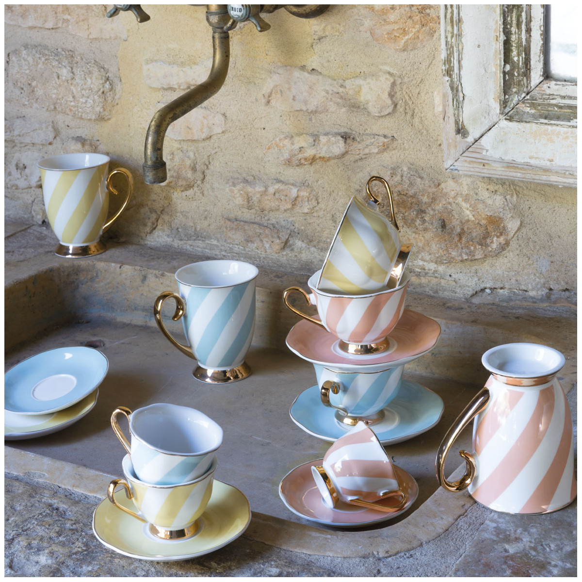 Tazzina da caffè e piattino Madame de Récamier a righe pastello - Rosa
